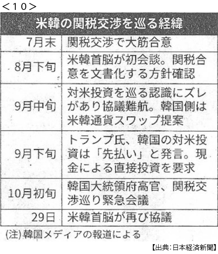 - ・米韓首脳、関税交渉で合意 自動車15%に引き下げ <10>