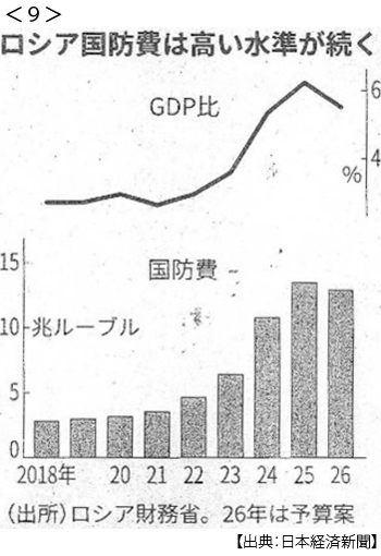 ・ロシア国防費 来年4%減 ウクライナ侵攻後初マイナス 連邦予算案 <9>