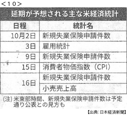 ・米雇用統計、遅れ不可避 政府閉鎖 経済実態、把握難しく <10>