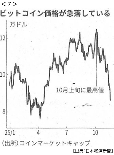 - ・ビットコイン価格急落 一時8万6000ドル 最高値から3割安 <7>