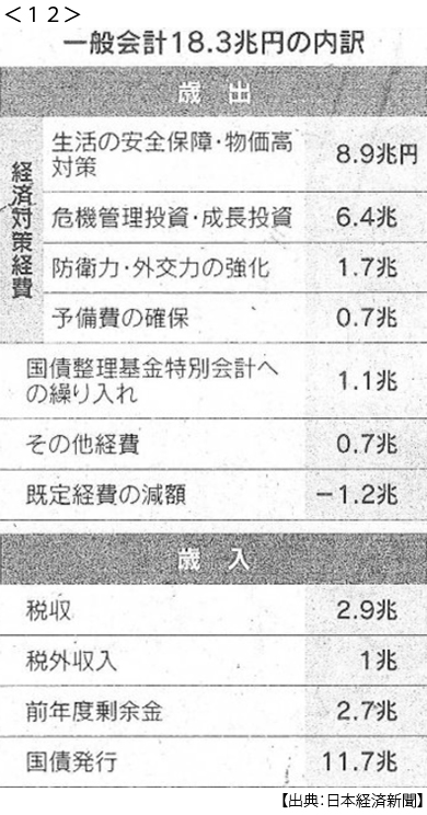 - ・補正予算案18兆3034億円 午後決定 物価対策や成長投資 <12>