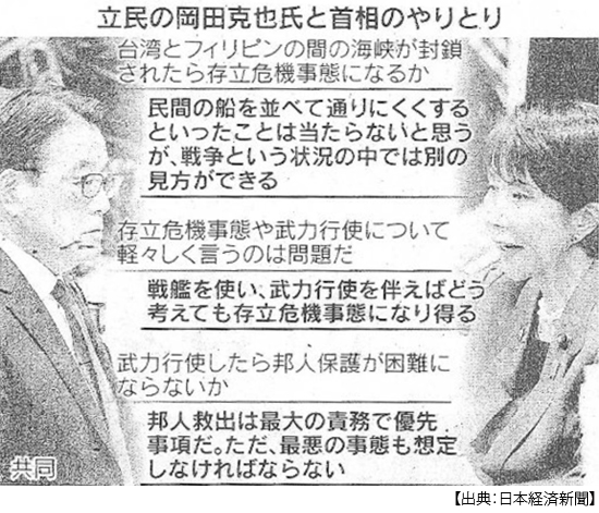 だから行儀良く議論を進めよう。その第一の「発言の内容そのものに対する評価」だ。高市さんのこの発言に驚かない人は、もともとはこの問題に関心がなかったに違いない。これを「従来の政府の立場を変えるものではない」というのは、どうも無理がある。かりに高市さんが指摘した「どう考えても存立危機事態になり得るケース」が本当に従来の政府の立場だとしても、それが初めて具体的に、国会で、それも自衛隊の最高指揮官が明言したのだから、驚くのがふつうだろう。