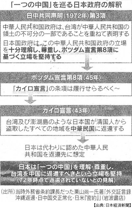 こうして日本もアメリカも中国と国交を正常化し、台湾とは国交を断絶した。その後もアメリカは「台湾関係法」によって台湾に自衛手段としての武器売却を認めているが、台湾有事にさいしての軍事行動は「あいまい」にしている。したがって日米安全保障条約がどのように発動されるかも「あいまい」にされ、だから当然日本の集団的自衛権発動に関わる存立危機事態と台湾との関係も「あいまい」だったのだ。