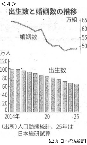 - ・今年出生数、最小66.5万人 民間試算、婚姻数横ばい <4>
