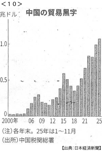 - ・中国貿易黒字、初の1兆ドル超 1~11月 アジア向け輸出拡大 <10>