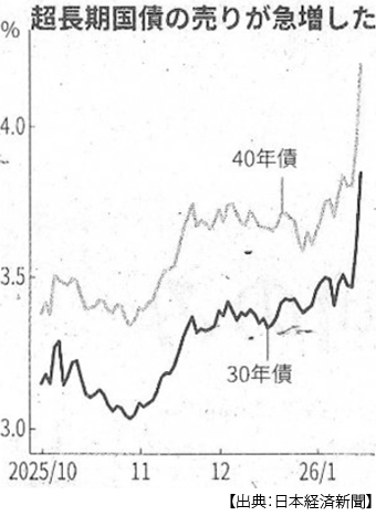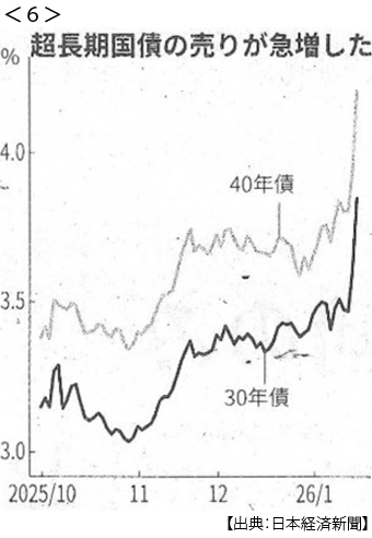 - ・超長期債利回り急上昇 40年債、初の4% 財政懸念で売り拍車 <6>