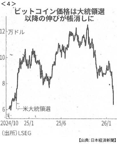 - ・ビットコイン ピークの半値 6万2000ドル台 トランプ効果帳消しに <4>
