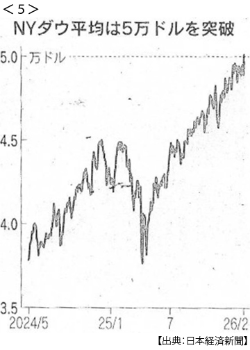 - ・NY株、初の5万ドル台 1206ドル高 テック以外も上昇 <5>